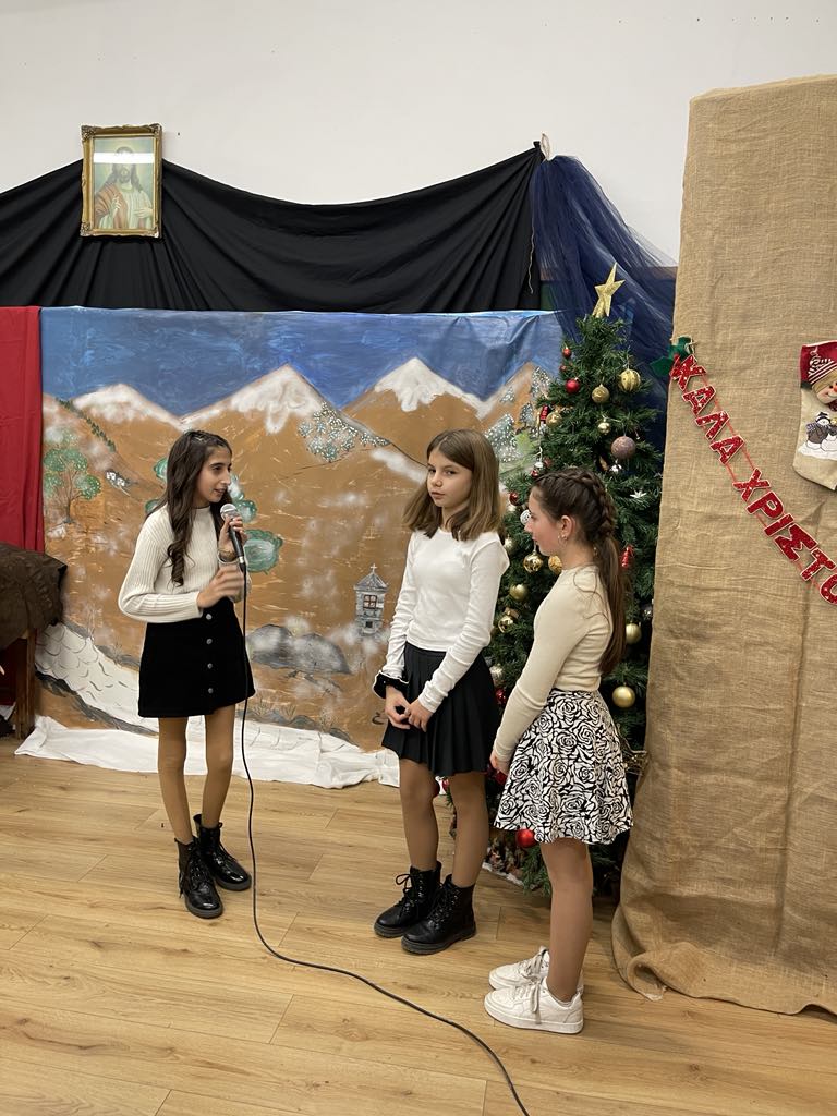 Το σχολείο μετατράπηκε σε μια μικρή γωνιά μαγείας, γεμάτη χριστουγεννιάτικα στολίδια, τραγούδια, κάλαντα από την εξαιρετική χορωδία του Σχολείου και την παιδική παράσταση «Μια ξεχωριστή μέρα του μπαρμπα-Πανώφ» που ζέστανε τις καρδιές όλων. Οι μικροί μαθητές, με το ταλέντο και τη δημιουργικότητά τους, θύμισαν το πραγματικό πνεύμα των Χριστουγέννων: την αγάπη, την αλληλεγγύη και την προσφορά.