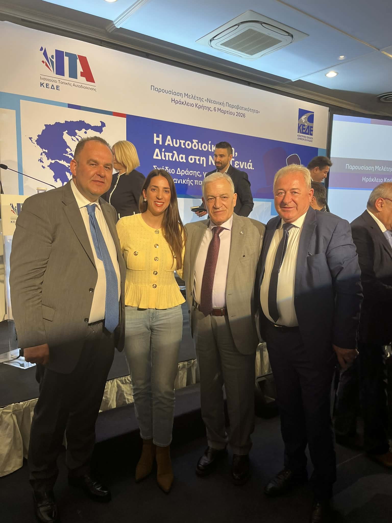Με ιδιαίτερο ενδιαφέρον και ενεργή συμμετοχή, ο Δήμος Γορτυνίας εκπροσωπήθηκε στις εργασίες της ημερίδας με θέμα «Η Αυτοδιοίκηση δίπλα στη Νέα Γενιά. Σχέδιο Δράσης για την πρόληψη της νεανικής παραβατικότητας», που διοργάνωσε το Ινστιτούτο Τοπικής Αυτοδιοίκησης (ΙΤΑ) της Κεντρικής Ένωσης Δήμων Ελλάδας (ΚΕΔΕ) στο Ηράκλειο της Κρήτης. Στη σημαντική αυτή εκδήλωση παραβρέθηκαν ο Δήμαρχος Γορτυνίας Ευστάθιος Κούλης, ο οποίος είναι και μέλος του Διοικητικού Συμβουλίου της ΚΕΔΕ, καθώς και η Αντιδήμαρχος Παιδείας Παναγιώτα Μπέτσα.