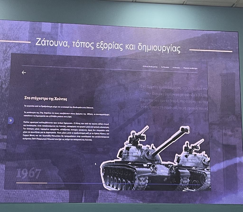 -Παρουσίαση του Ψηφιακού Εικονικού Μουσείου Μίκη Θεοδωράκη Ζάτουνας, που ολοκληρώνεται και θα δοθεί στους επισκέπτες του Μουσείου, στον κόσμο και στις νέες γενιές, το 2025, με τη συμπλήρωση 100 χρόνων από την γέννηση του μεγάλου, παγκόσμιου συνθέτη, αγωνιστή, πολιτικού και στοχαστή.
