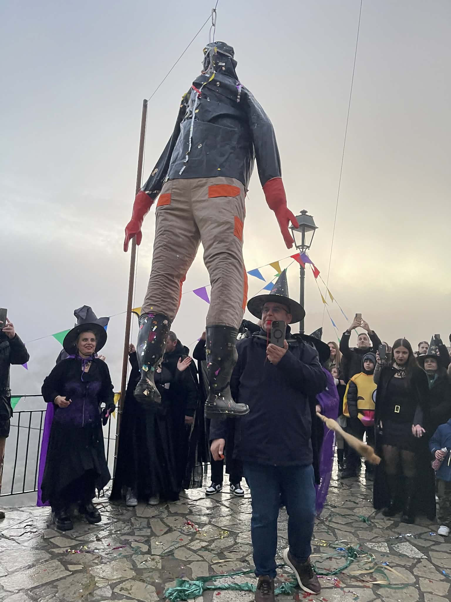 Εκεί ο «Μακαρονάς» κρεμάστηκε ψηλά και με μια συμβολική κίνηση για τον εξαγνισμό, την αναγέννηση και την κάθαρση παραδόθηκε στις φλόγες.