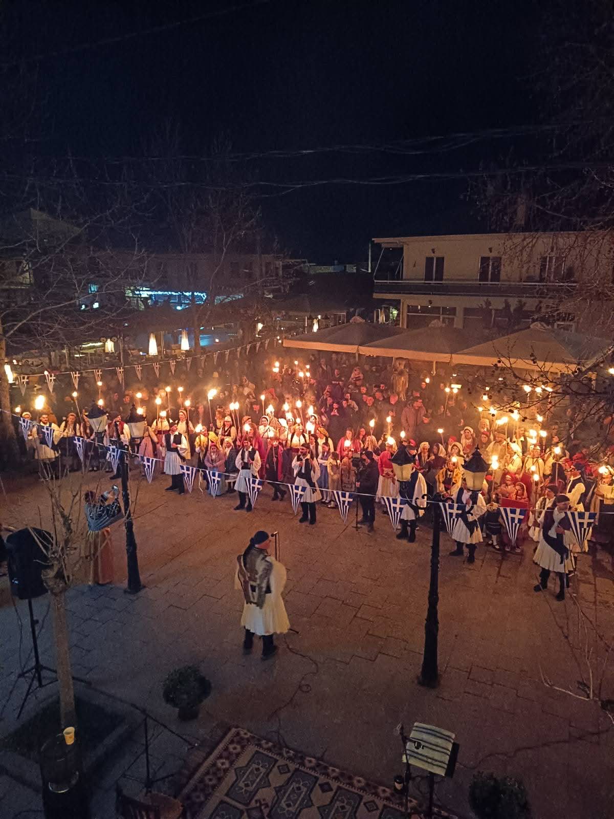 Η Βυτίνα πλημμύρισε από κόσμο, καθώς κάτοικοι και επισκέπτες συγκεντρώθηκαν για να παρακολουθήσουν και να συμμετάσχουν στη νυχτερινή πομπή, η οποία μετέτρεψε τον οικισμό σε ζωντανό χώρο ιστορικής αναφοράς. Άνθρωποι όλων των ηλικιών, κρατώντας αναμμένες δάδες, έδωσαν δυναμικό παρών σε μια δράση που συνδύασε τη μνήμη με τη βιωματική εμπειρία.