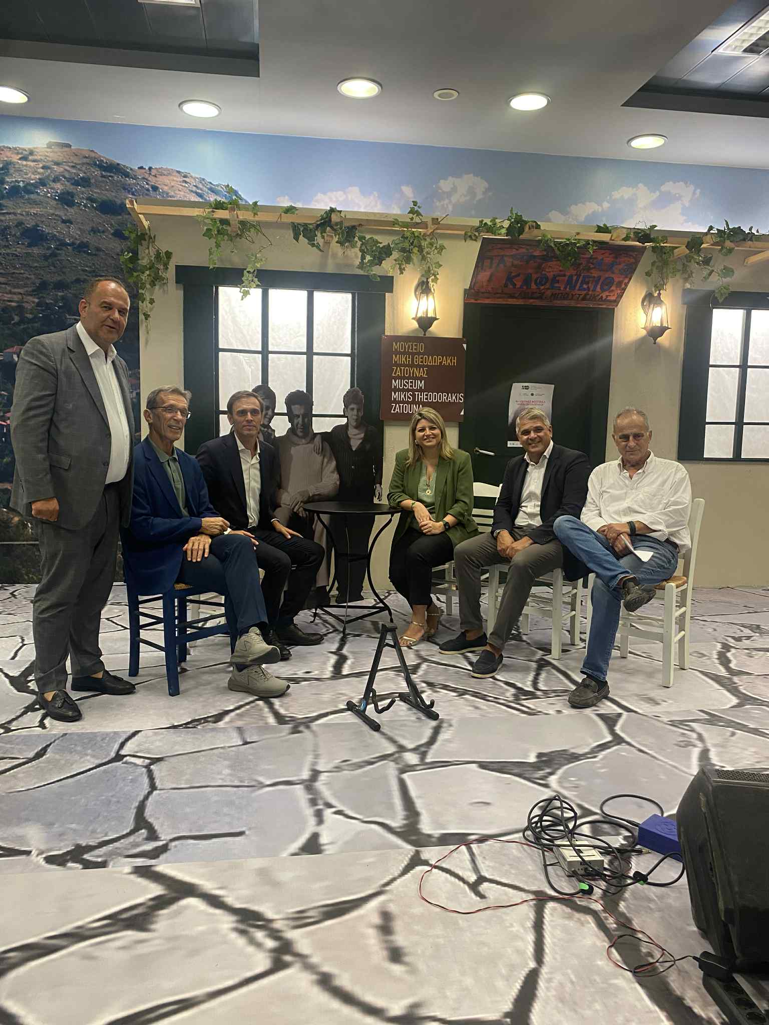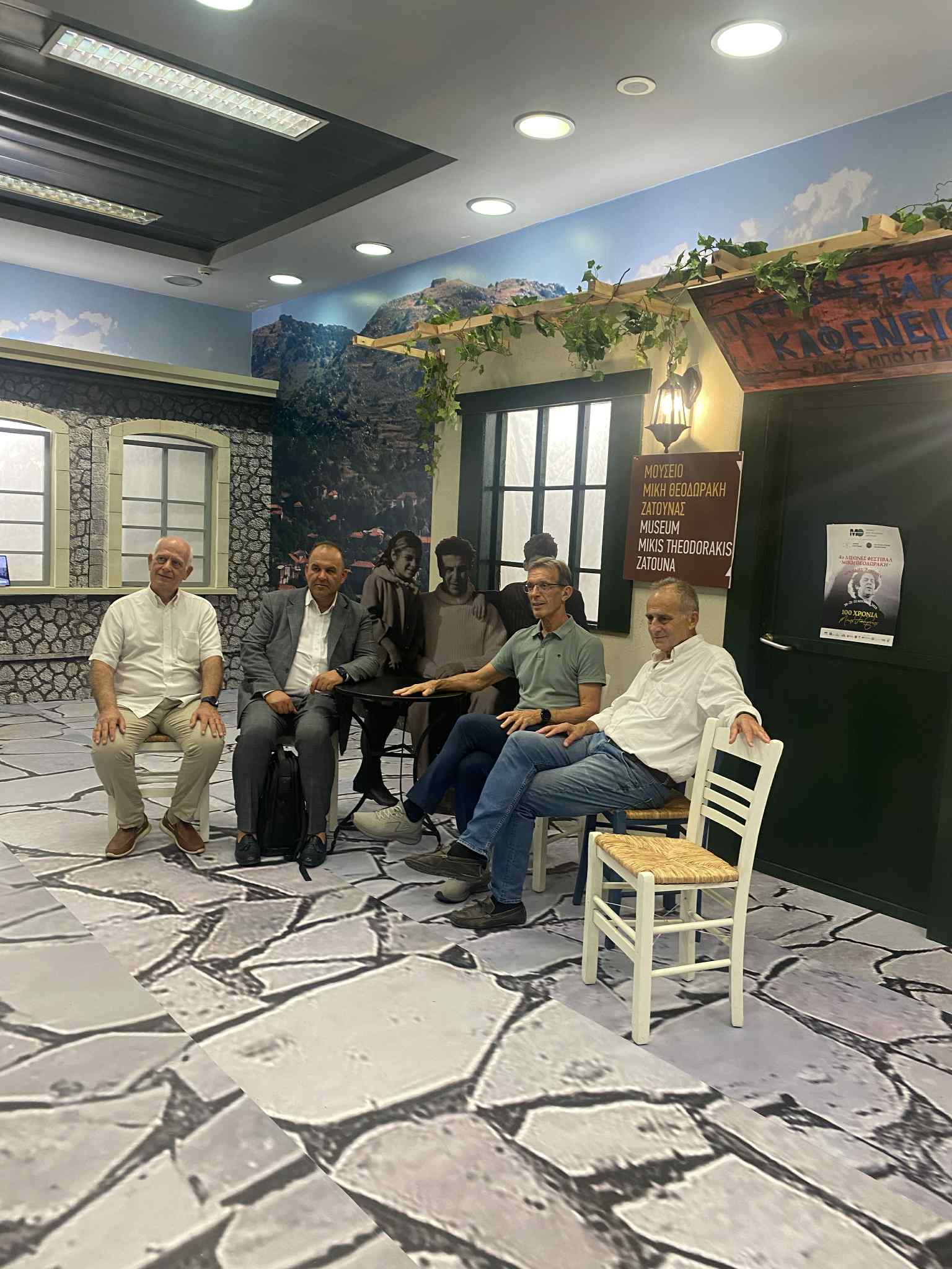 Ο Πρόεδρος του Μουσείου Μίκη Θεοδωράκη Ζάτουνας Παρασκευάς Παρασκευόπουλος στην ομιλία του καλωσόρισε τους παριστάμενους και μετέφερε τους χαιρετισμούς του επίτιμου προέδρου του Μουσείου σκηνοθέτη Κώστα Γαβρά, τονίζοντας: «είμαστε ένα μουσείο εθελοντών… Η απόφαση του Δ.Σ. της ΔΕΘ να τιμήσει το Μίκη φιλοξενώντας το Μουσείο του, με την εικαστική αναπαράσταση του εμβληματικού καφενείου του, που καθημερινά και με αστυνομική συνοδεία επισκέπτονταν στη Ζάτουνα, όπου παρέμεινε το 1968 και το 1969 εκτοπισμένος από την δικτατορία, με μουσειακά – ιστορικά ντοκουμέντα από το φυσικό Μουσείο, με την προβολή ενός θαυμάσιου ντοκιμαντέρ για τη ζωή και την καλλιτεχνική και πατριωτική του δράση καθώς και με την παρουσίαση του πρώτου στην Ελλάδα Ψηφιακού Εικονικού Μουσείου Μίκη Θεοδωράκη Ζάτουνας αποτελεί ξεχωριστή τιμή».