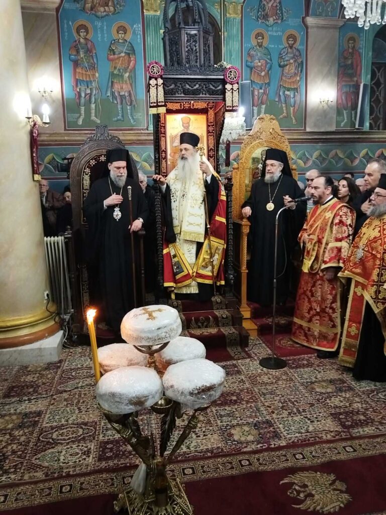 Ανήμερα της εορτής, την Κυριακή 1 Φεβρουαρίου, τελέστηκαν ο Όρθρος και η Πανηγυρική Πολυαρχιερατική Θεία Λειτουργία μετά Αρτοκλασίας προεξάρχοντος του Σεβασμιωτάτου Μητροπολίτου Νέας Ιωνίας, Φιλαδελφείας, Ηρακλείου & Χαλκηδόνος κ.κ. Γαβριήλ και συλλειτουργούντων του Σεβασμιωτάτου Μητροπολίτου Σταγών & Μετεώρων κ.κ. Θεοκλήτου και του Σεβασμιωτάτου Μητροπολίτου Γόρτυνος & Μεγαλοπόλεως του και Ποιμενάρχου μας κ.κ. Νικηφόρου, του Πρωτοπρεσβυτέρου π. Νικολάου Ντάβου, καθώς και ιερέων από την ευρύτερη περιοχή της Γορτυνίας.