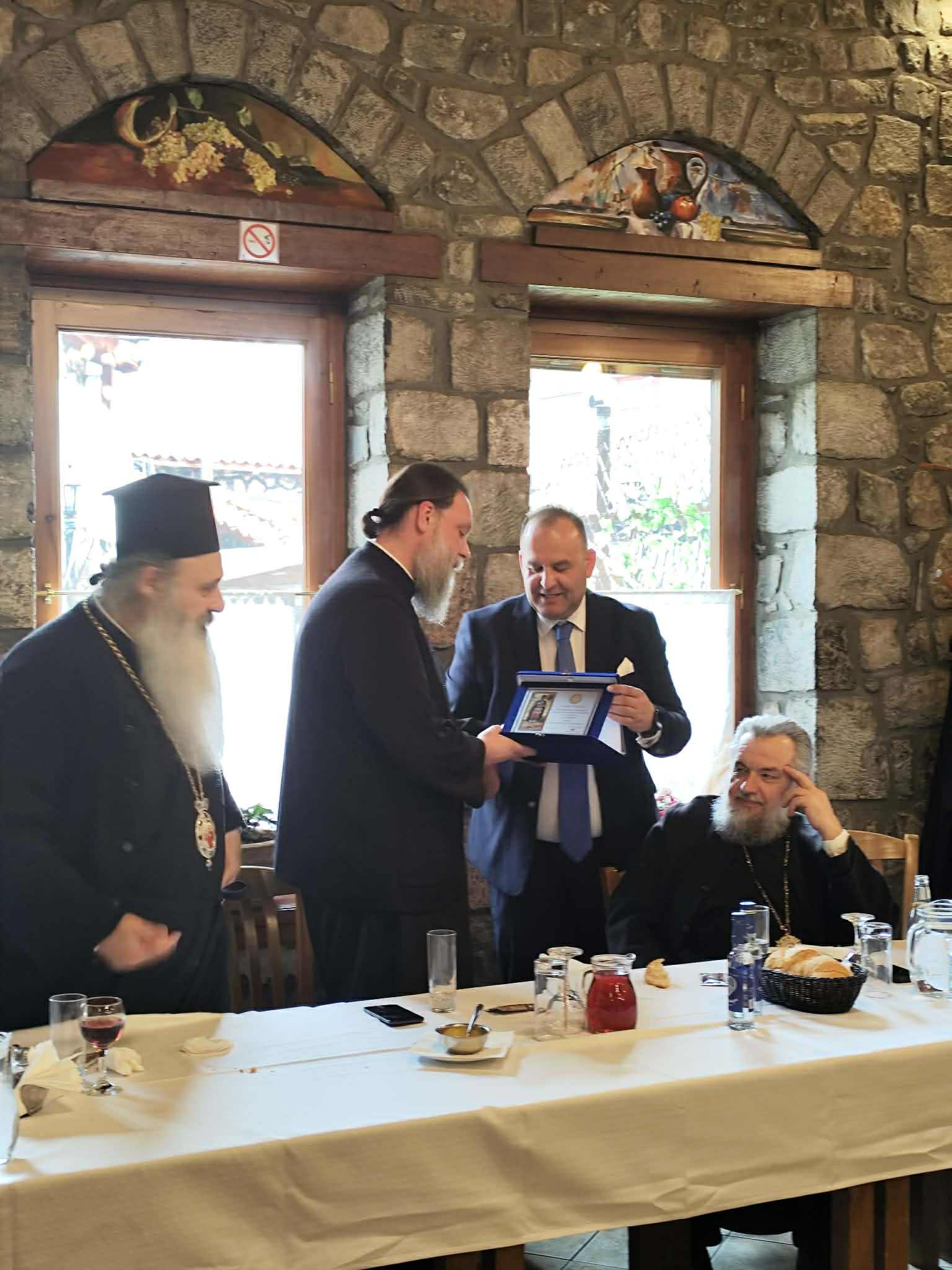 Κλείνοντας ο Δήμαρχος προσέφερε αναμνηστικά δώρα στους Αρχιερείς εις ανάμνησης της συμμετοχής τους στην Πανήγυρη.