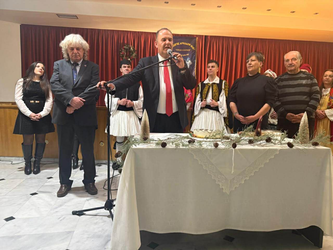 Ο κος Κούλης στον χαιρετισμό του εξήρε το έργο των συλλόγων που αποτελούν ζωντανό κύτταρο της πατρίδας μακριά από τον γενέθλιο τόπο υπογραμμίζοντας τη σημασία της συλλογικής προσπάθειας που μεταφέρει μήνυμα ενότητας και κοινής προοπτικής.