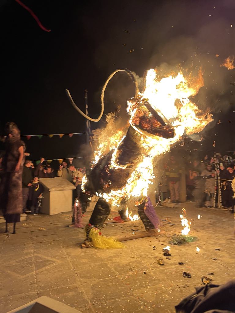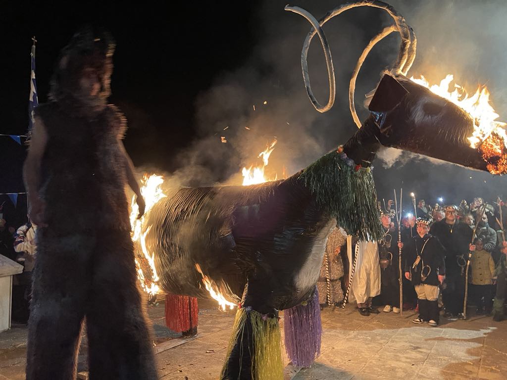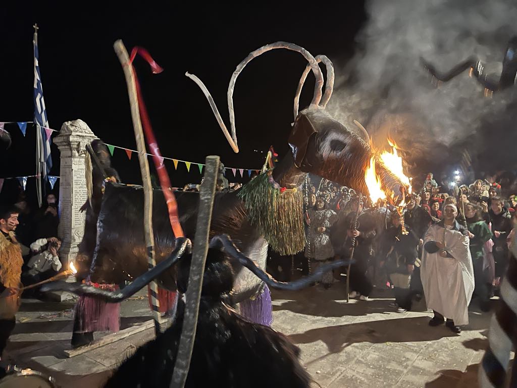 Τα μυθολογικά πλάσματα με την αναπαράσταση των Διονυσιακών και Παγανιστικών μυστηρίων και το κάψιμο του τράγου ξεσήκωσαν το πλήθος σε ένα γλέντι γεμάτο χαρά.